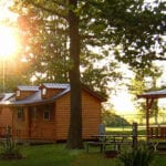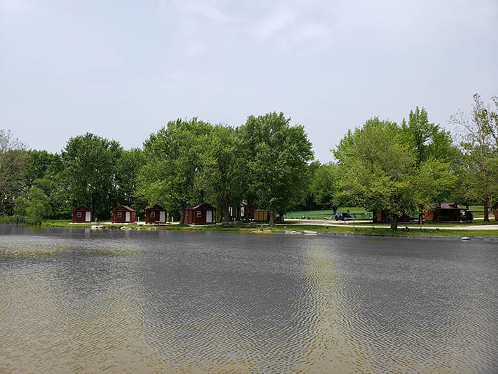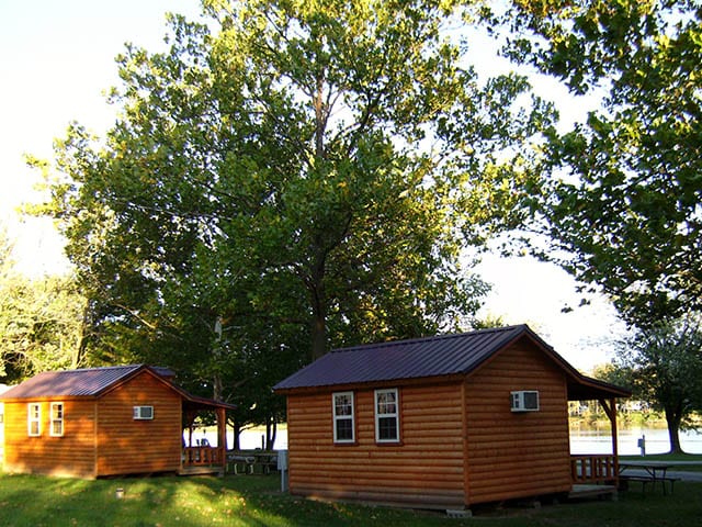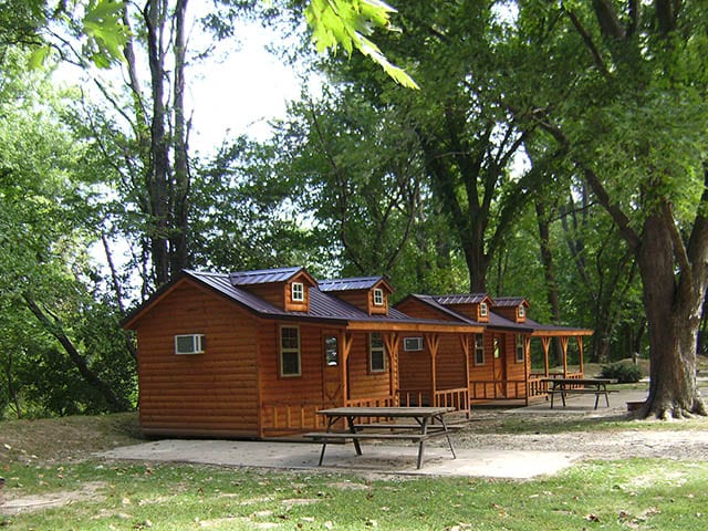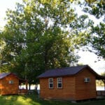 These units are beautifully situated on the lake and 2 units are located creek-side in the lower level of the campground. These one-room cabins sleep 5 people maximum; 2 adults and 3 children. There’s even a triple-decker bunk bed that the kids love!!!