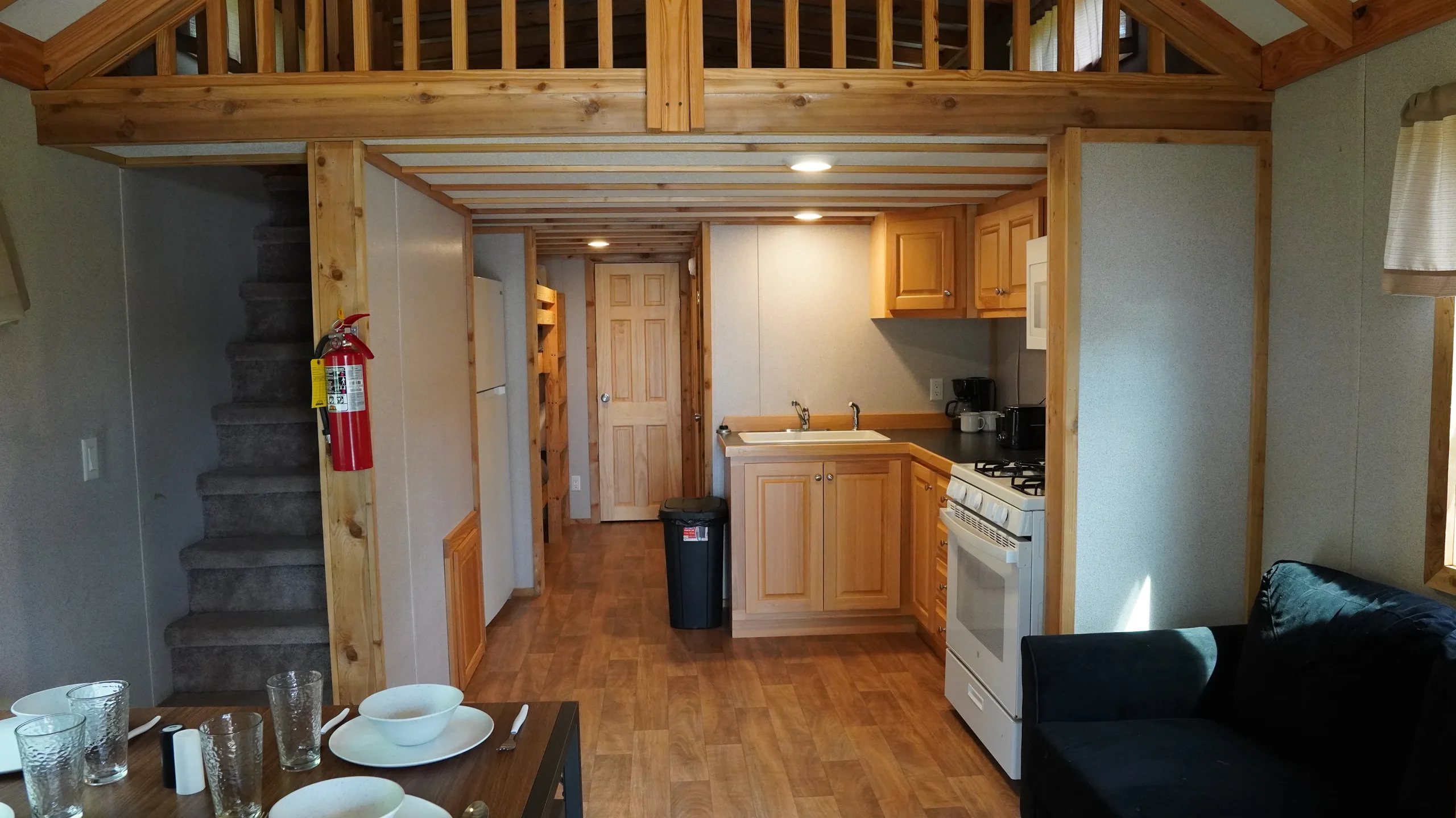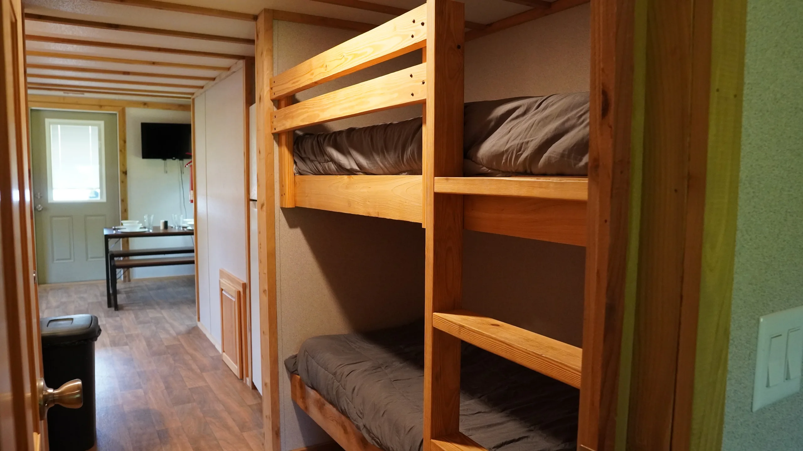 These units have a queen size bed in a private bedroom and one set of twin bunk beds downstairs. You may sleep up to an additional 4 children if you bring sleeping bags for the loft.