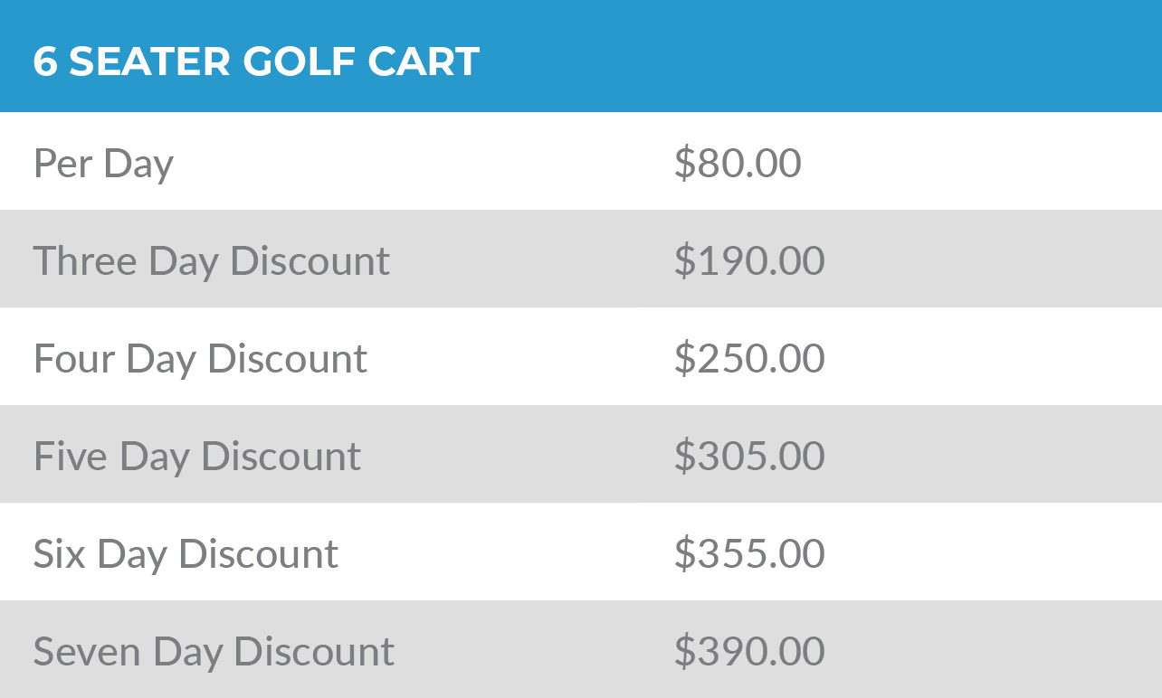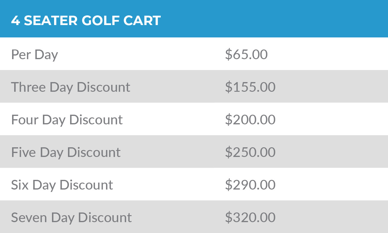Golf Carts must be picked up and returned by the designated time determined at time of rental